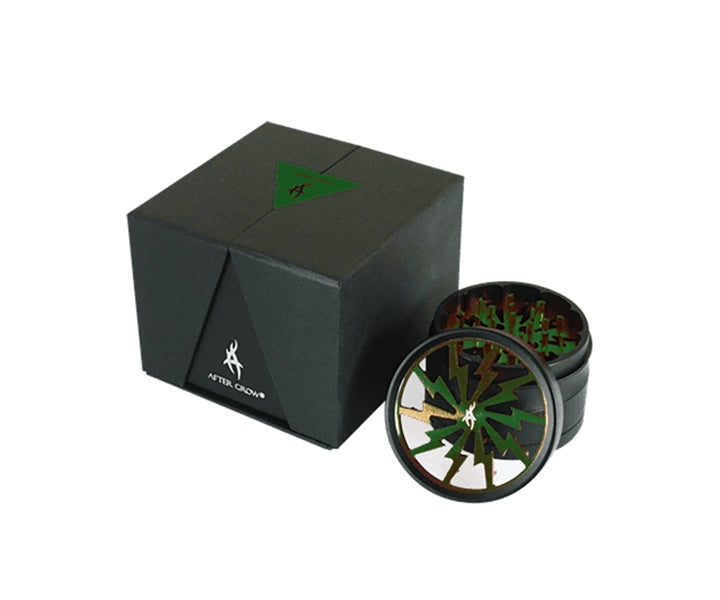 Der 'Thorinder' Mini Premiumgrinder von 'After Grow' mit patentiertem Design ist aus Aluminium und Edelstahl gefertigt, ergonomisch geformt und hat ein Sichtfenster auf das Mahlwerk mit blitzförmigem Design. Die farbigen, CNC-gefrästen Zähne sind diamantförmig geschliffen. Der transparente Deckel schließt magnetisch und ein Nylonring sorgt für reibungsloses Mahlen. Der 'Thorinder' Mini kommt in einer schicken Geschenkbox und enthält auch eine Pollenschaufel.
