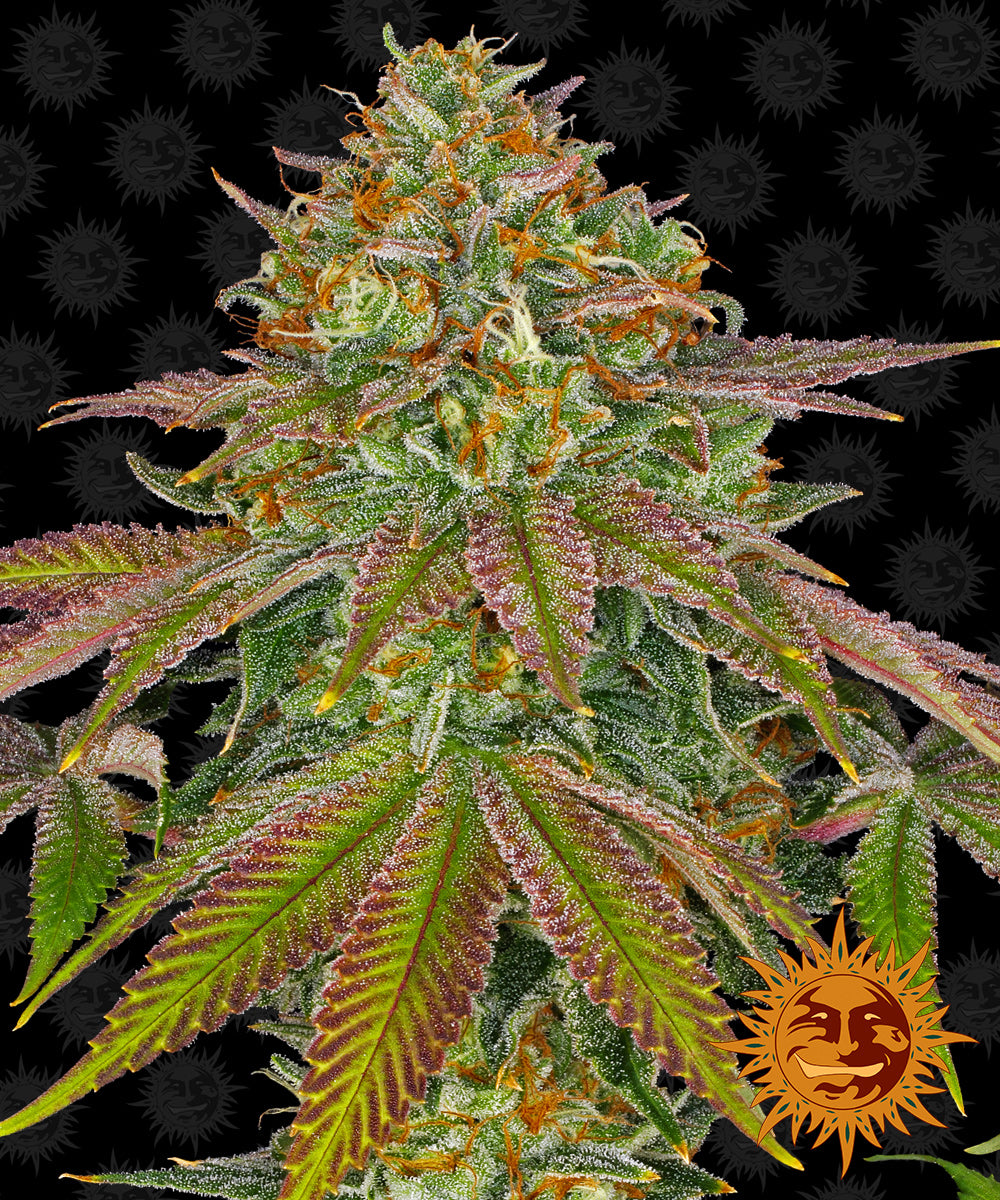 Indica dominant (65%) studded with bud, this plant has very tight node spacing. Only a few weeks after planting, weighty buds will, shimmering like jewels in the light, will start to take form. After only 70-75 days these gleaming grape flavored gargantuan flowers packed tightly together will be perfectly formed, ready for harvest, at a final height of 90cm, 500 gr/m² is easily achievable, up to 750 gr/m² outdoors. THC has been tested at 25% with 2.4% CBD. Take care though as overindulgence may send you into an unstoppable berry flavoured voyage of deep relaxation and slumber. Don’t miss out on this historic piece of autoflowering mastery from the Barney’s Farm Lab.